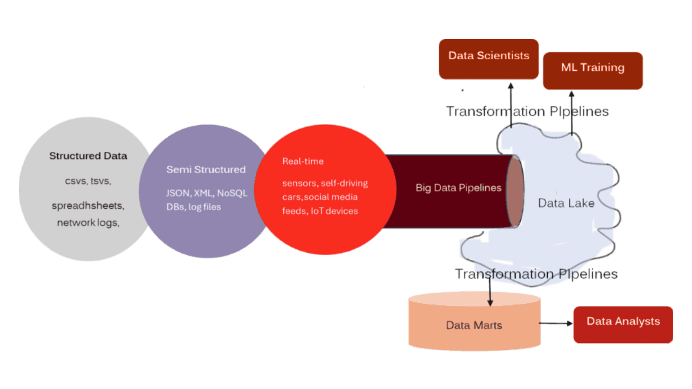 As organizations wanted more flexibility, data lakes emerged: large, inclusive environments accepting all data sources. Think of a walk-in Costco warehouse: everything’s available, but it’s easy to lose track.