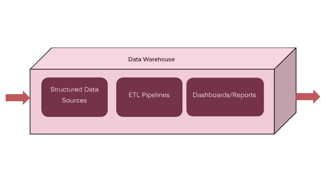 Data Sources → ETL Pipeline → Data Warehouse → Dashboards/Reports